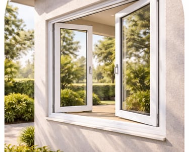 Enhance your space with premium UPVC Casement Windows from SGW VEKA UPVC, designed to deliver excellent ventilation, strong sealing, and long-lasting durability. These windows open outward or inward, allowing maximum airflow and unobstructed views.